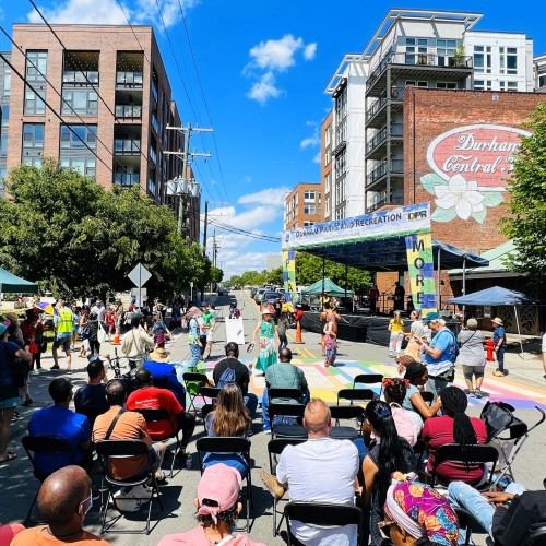 Juneteenth commemorates the end of slavery. Its name is a portmanteau of "June" and "nineteenth". Throughout the month of June, Durham celebrates Juneteenth with various events that educate the community more about the day, reflecting, and supporting Black-owned businesses.
